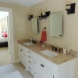 A re-purposed bureau becomes a vanity with a soapstone top. The vanity is from 4 Conant Interiors, Brandon, Vermont -